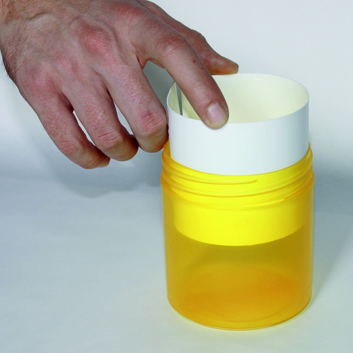 Durch Abziehen des Silikonpapiers wird die Lockwirkung des Pheromons aktiviert. Den aktiven Lockstreifen tief in die spezielle LOCKSTOP® Lebensmittel-Mottenfalle platzieren, Deckel ver-schrauben und aufstellen oder hängen.