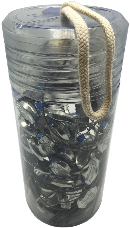 50-piece bundle in PVC container, pre-assembled with V4A rope