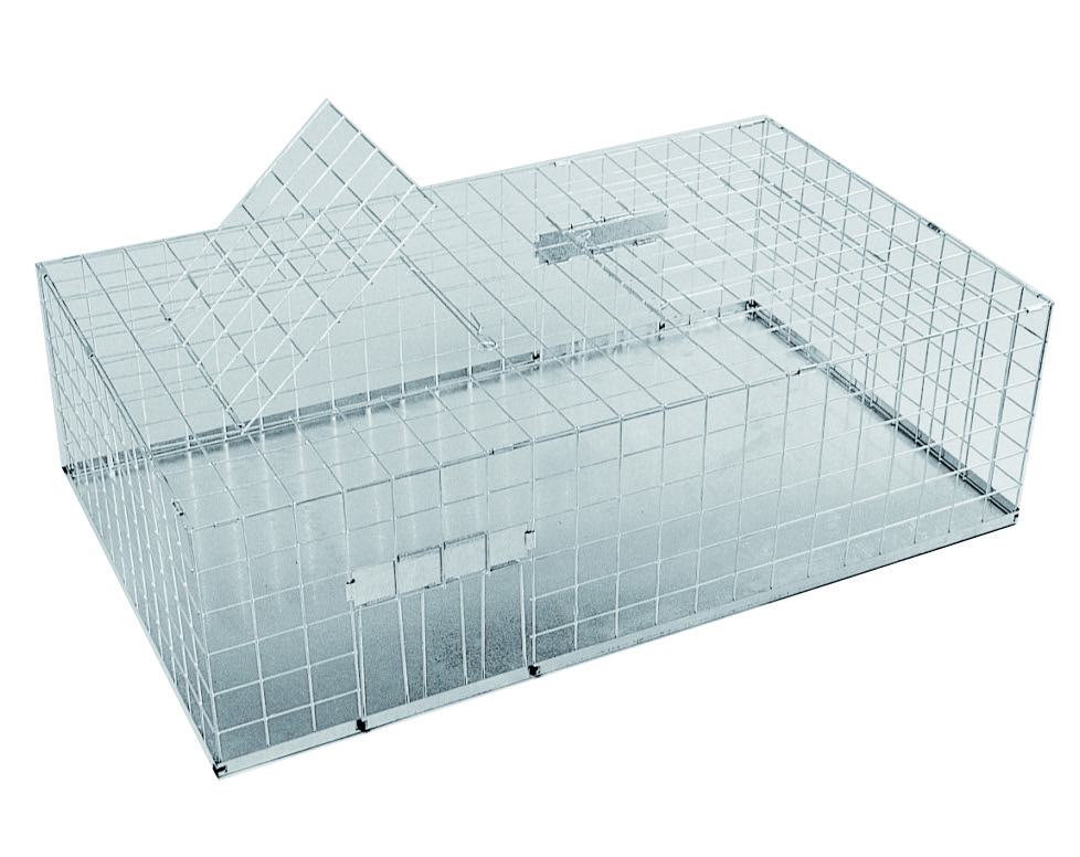 Professional pigeon trap for safe live capture Dimensions: 62 x 32 x 97 cm (W x H x L) Mesh size: 50 x 50 mm Two side entrances One removal flap at the top Capacity for max.